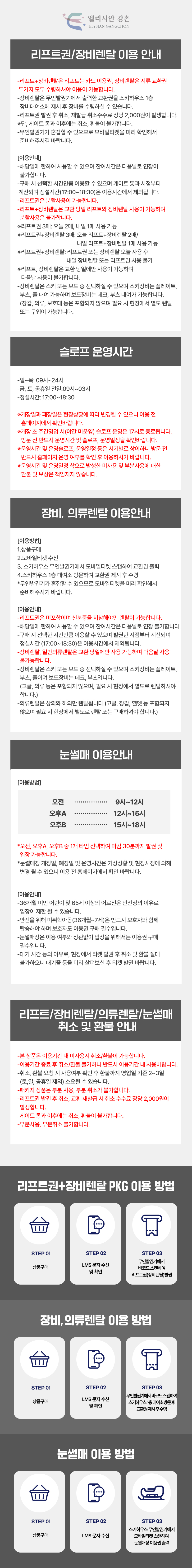 해당 이용일 기준 스키장 영업 종료 시 이용이 종료되며, 잔여시간은 이월·환불이 불가합니다.