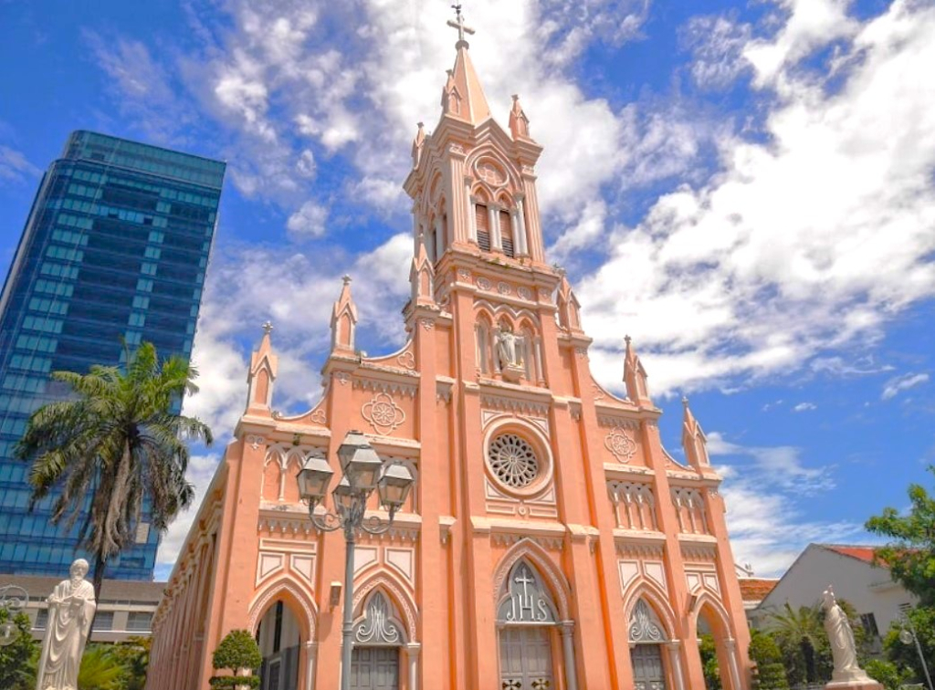 분홍빛 외관이 시선을 사로잡는 다낭의 랜드마크, 핑크성당!