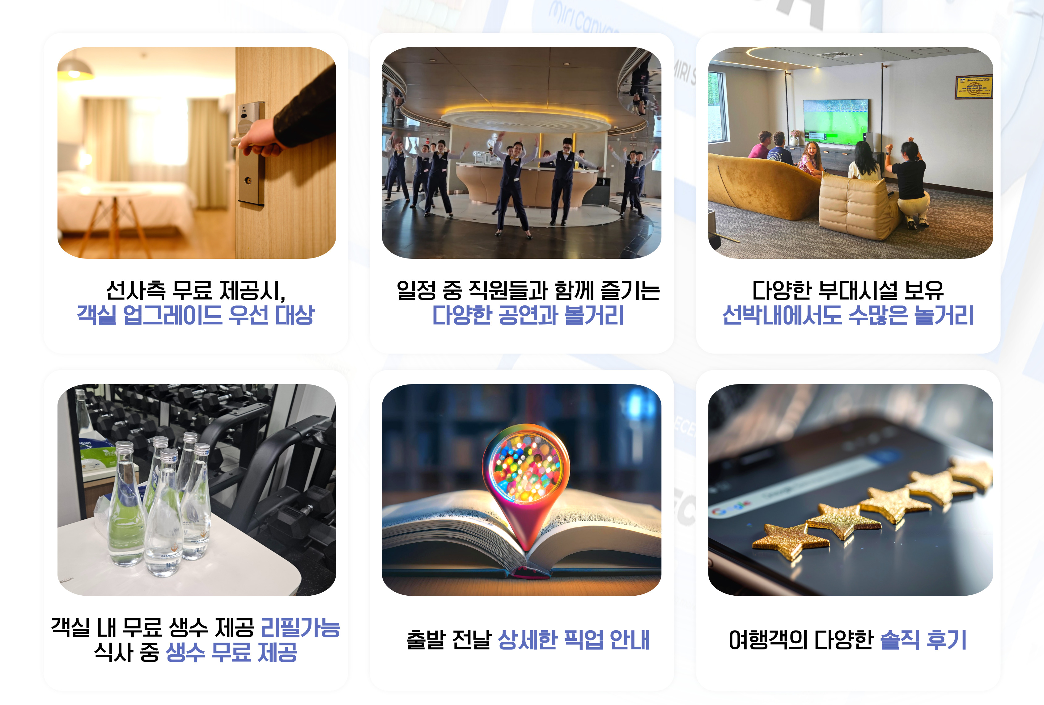 | 크루즈 일정 도중 취소 시 | 제공된 서비스(차량, 중식, 입장료) 공제 후 환불 |