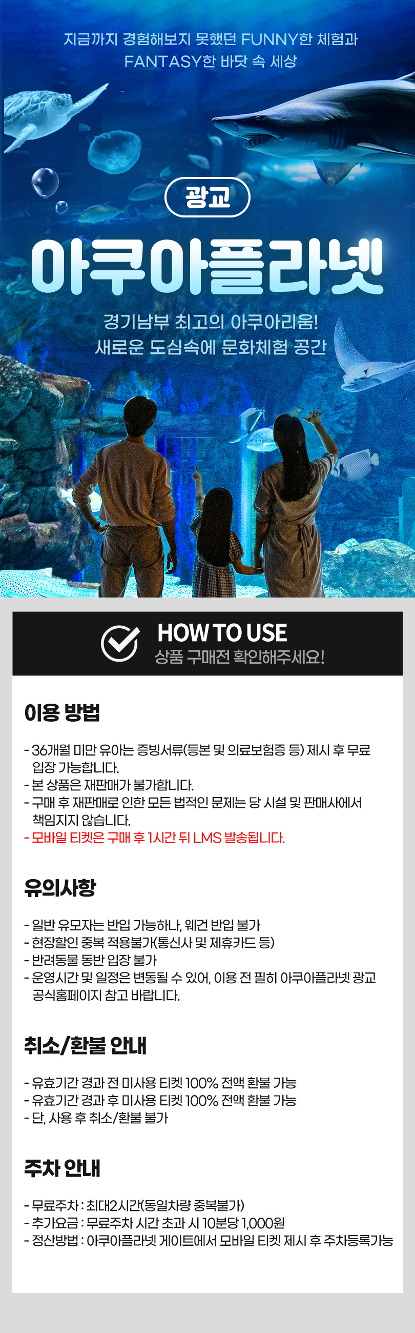 36개월 미만 유아는 무료 입장 가능합니다. (단, 증빙서류 필수 지참)