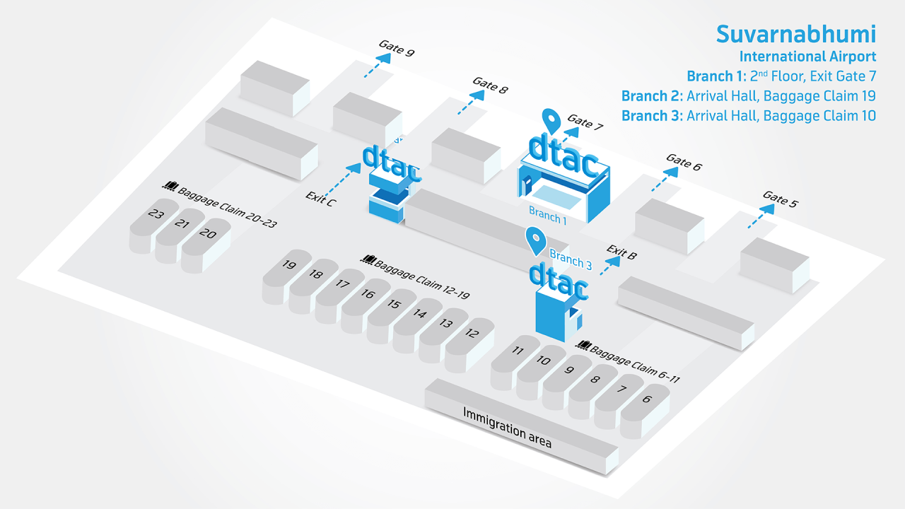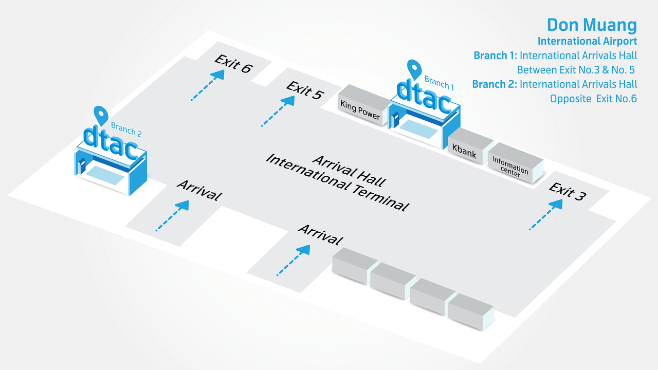- 돈므앙 국제공항 DTAC 카운터: 5:00 AM 부터 자정까지