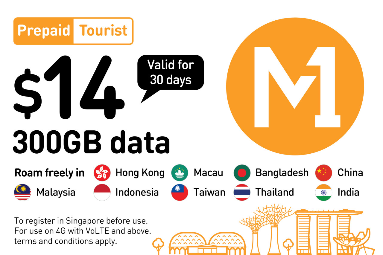 - SGD 14 투어리스트 SIM 카드는 말레이시아(Celcom), 인도네시아(XL Axiata), 홍콩(SmarTone), 마카오(CTM Macau), 대만(Chunghwa Telecom)에서 사용할 수 있는 300GB의 로밍 데이터를 제공합니다. 방글라데시(Robi Axiata) 및 태국(AIS, TRUE)에서는 3GB, 중국(China Unicom, China Mobile) 및 인도(Bharti Airtel/IDEA Cellular)에서는 1GB의 추가 로밍 데이터가 제공됩니다. 또한, 국제전화의 경우, 방글라데시, 중국, 인도, 인도네시아, 말레이시아, 태국으로의 IDD 033 100분 통화도 제공됩니다.