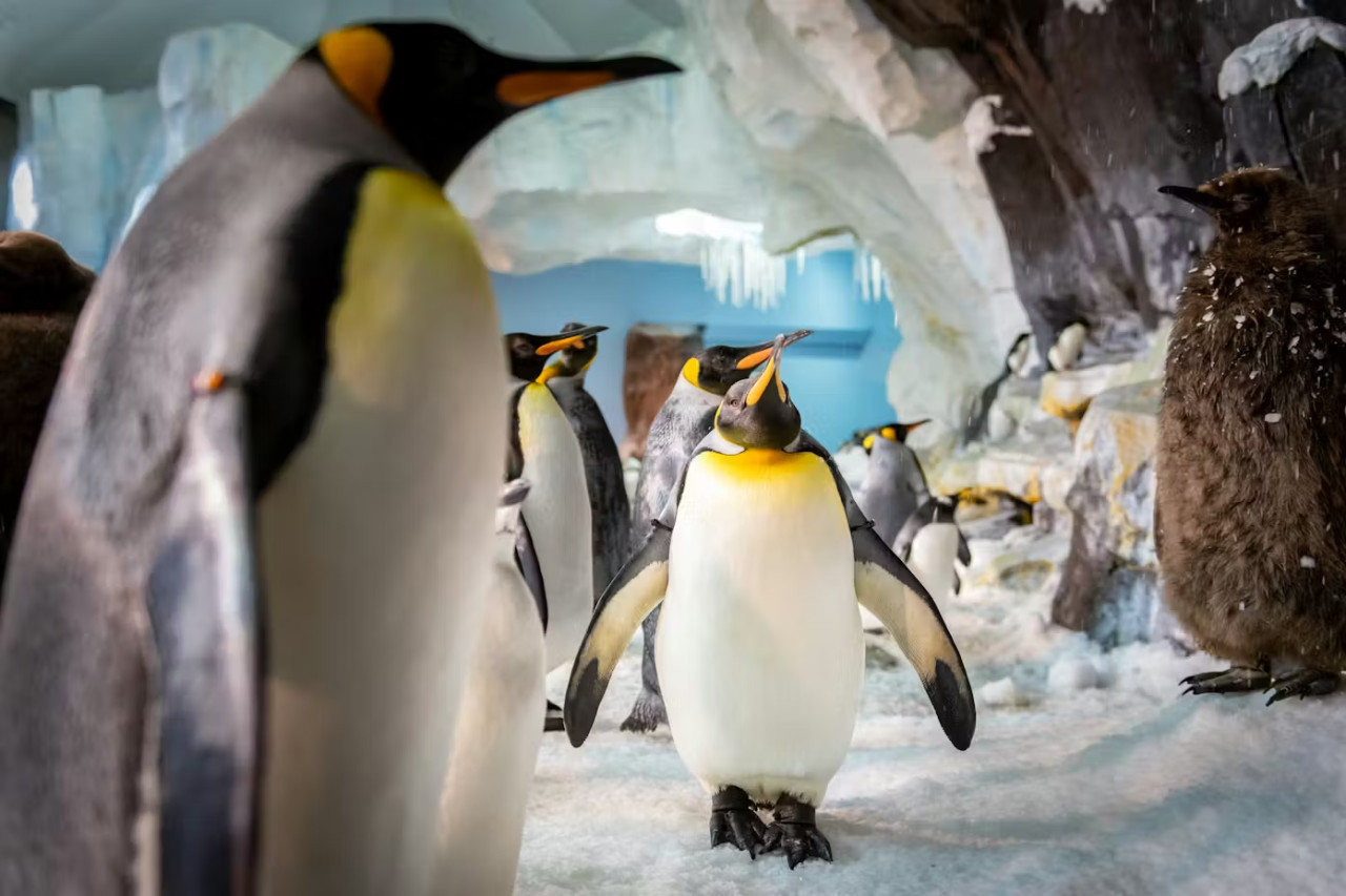 펭귄 트렉에서 남극을 체험하며 실제와 같은 펭귄 서식지를 탐험해보세요.
