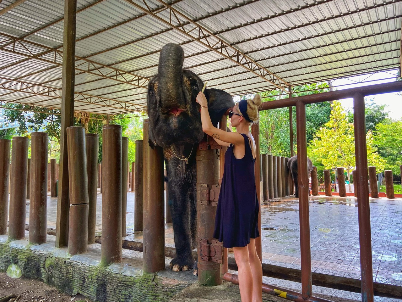- 코끼리에게 먹이를 주고 교감, 사진 촬영