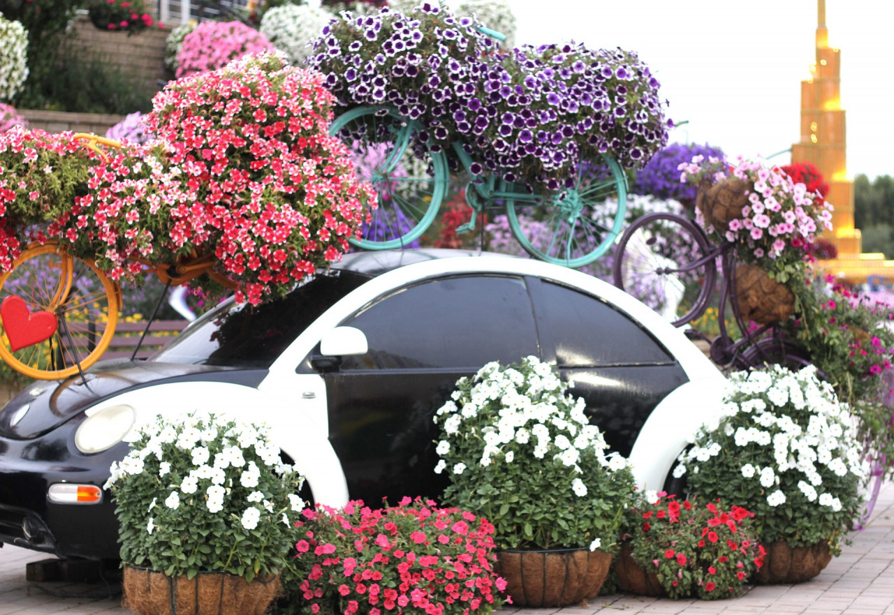 세계 최대의 가든으로 사막 한 가운데 울창한 오아시스로 지어져 2013년에 오픈한 이 곳은, 72,000제곱미터의 방대한 지역에 테마 정원과 산책로, 독특한 구조물들로 구성되어 있으며, 70여종 이상의 외래종과 토착종에서 약 1억개 이상의 꽃들이 피어나고 있습니다. 세계 최대 꽃벽은 기네스북에도 등재되어 있습니다.