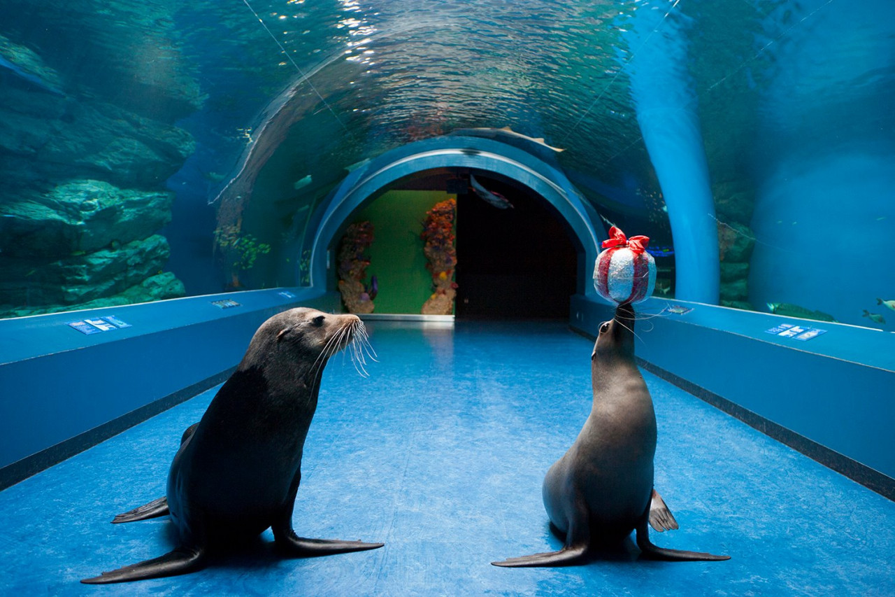 맥셀 아쿠아 파크에서 계절별로 다른 수중 설치물을 구경해 보실 수 있습니다.