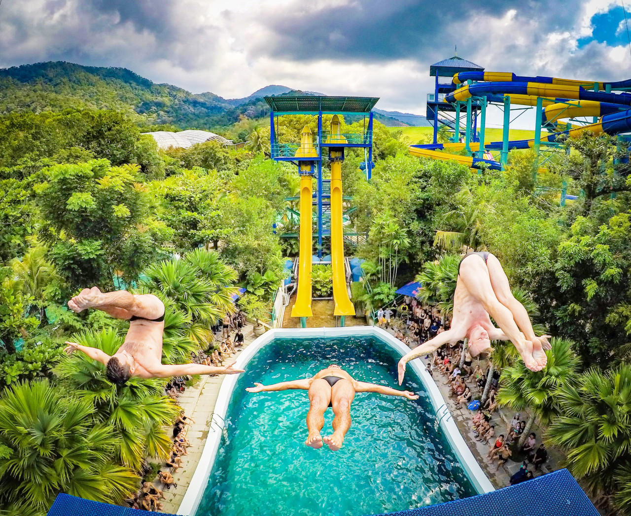 열대 우림 마을에서의 장난스러운 어린 시절에 영감을 받아 만들어진 이스케이프 페낭에서는, 나무 오르기, 나뭇가지로 친구를 공중에 띄우기, 나무 꼭대기에서 연못으로 다이빙, 자전거로 내리막길 질주, 점프, 뒤집기, 미끄럼틀 타기, 클라이밍, 나무 사이에서 그네타기 혹은 레이지 리버위를 둥둥 떠다니며 휴식하기등 모든 연령대가 즐길 수 있는 다양한 놀거리들이 가득 합니다.