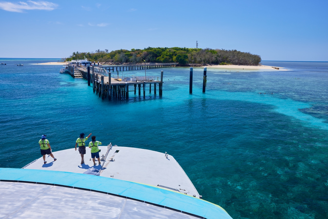세계 문화 유산 지역인 그레이트 배리어 리프 해양 공원 코럴 씨에 위치한 그린 아일랜드의 아름다움을 경험해 보세요. 케언스에서 단 45분 거리에 있는 섬까지는 넓고 편안한 쌍동선을 타고 이동합니다.