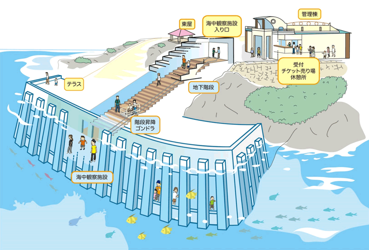 미야코지마 해저공원은 어린이부터 노인까지 누구나 편한 복장으로 찾아와 풍부한 해양 자원과 부담 없이 접해 볼 수 있는 미야코지마의 관광 명소로서, 24개의 아크릴 판넬 창을 통해 바다가 보이는 알록달록한 열대어, 문어, 바다뱀 등 다양한 해양 생물과의 새로운 만남이 방문할 때마다 여러분을 기다립니다. 미야코지마 해저에 서식하는 물고기들이 어떻게 살아가는지 눈으로 직접 확인해 보세요.