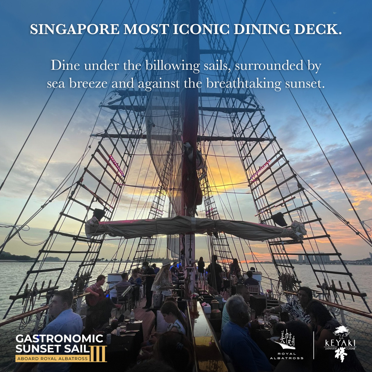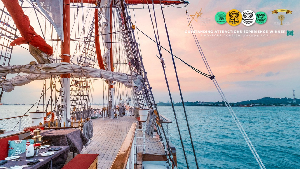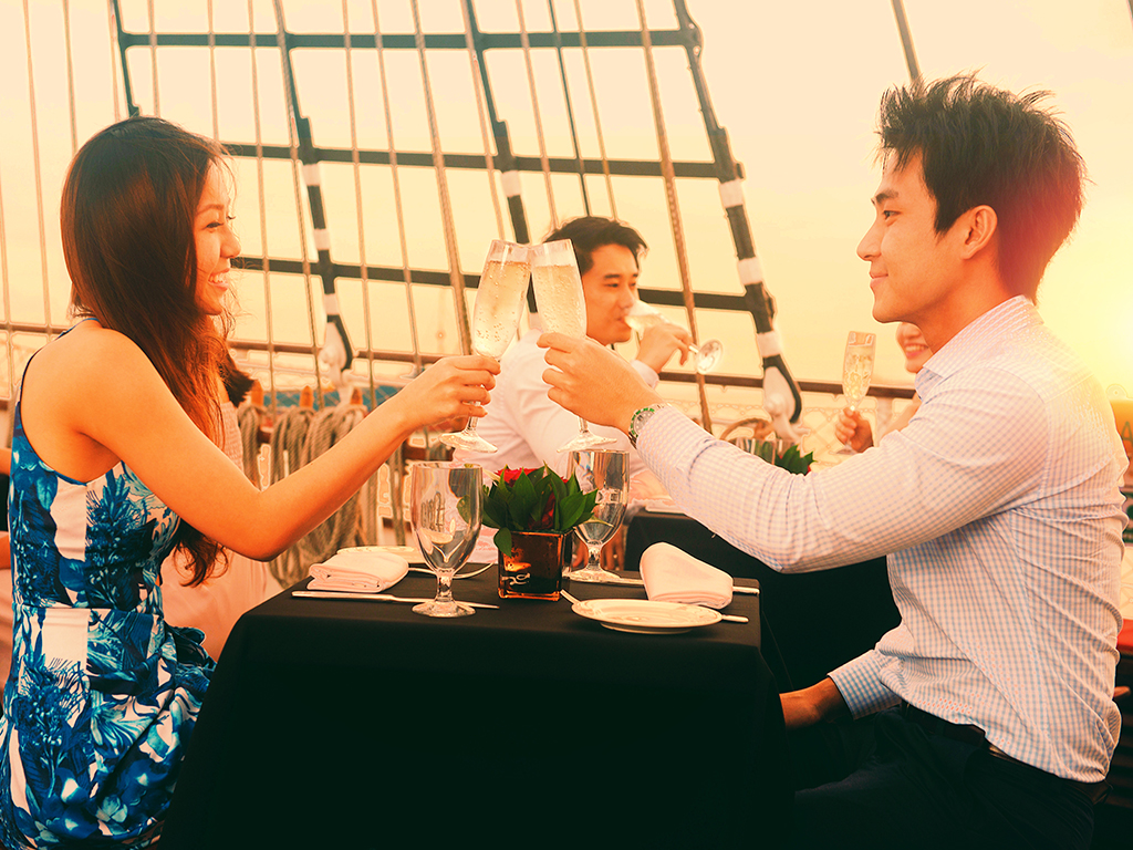 범선 위에서 해 질 무렵 바다를 보며 식사하는 경험이 정말 낭만적이었어요.