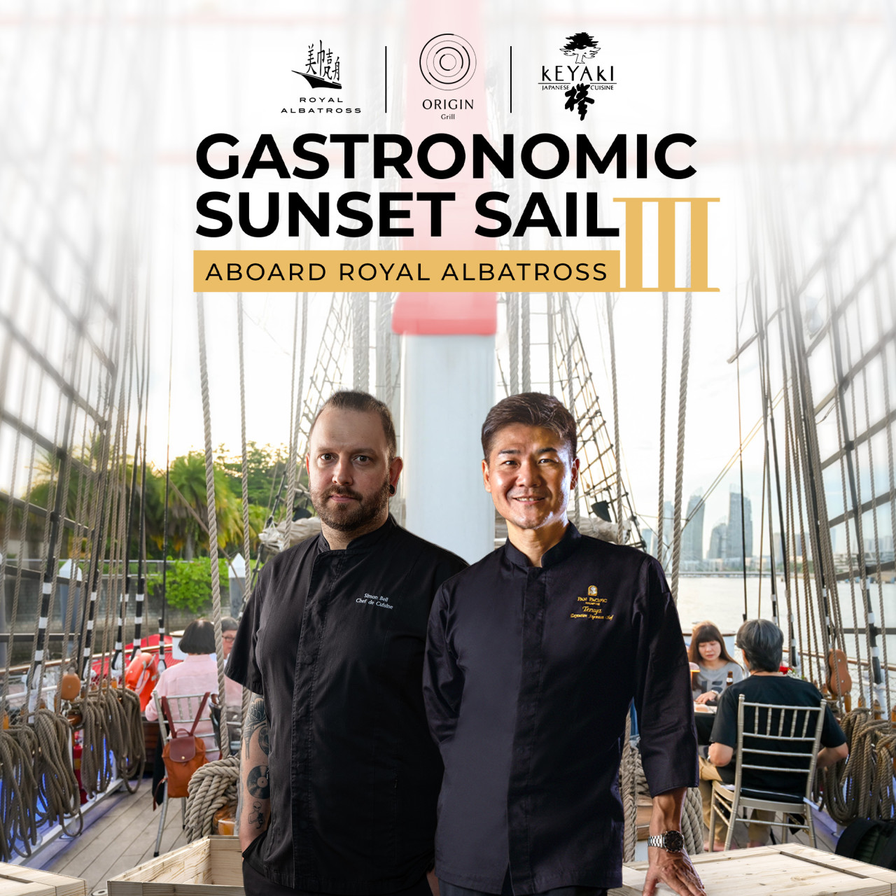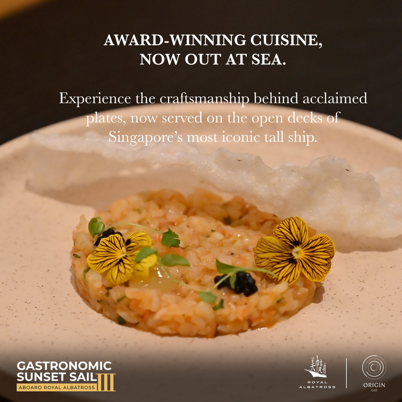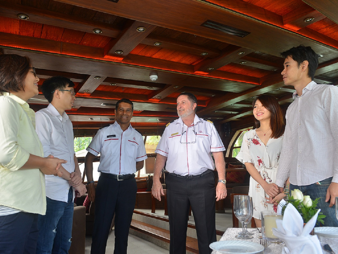 범선 위에서 해 질 무렵 바다를 보며 식사하는 경험이 정말 낭만적이었어요.