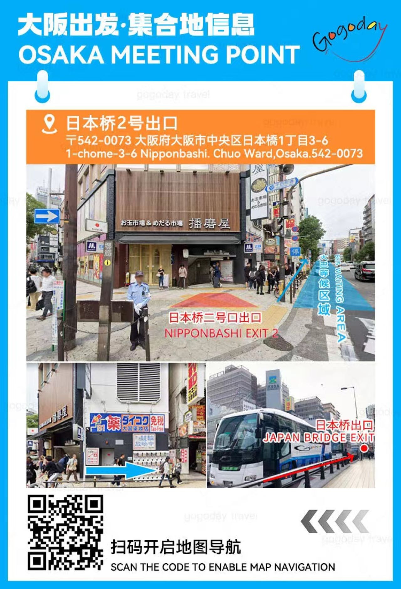 - 호텔 픽업은 오전 7시~오전 8시 30분 사이 오사카 내에서 이뤄지며, 투어 날짜 1일 전 투어 오퍼레이터가 픽업 관련 세부사항을 공지합니다.