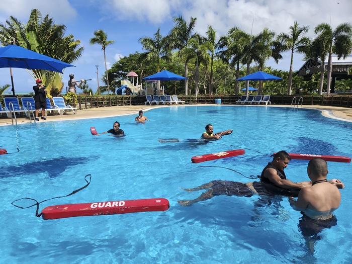 이렇게 수영장에서 구조 안전교육도 하고, 그로토는 바다이기에 바다에서도 좀 더 심층적인 훈련을 받습니다.