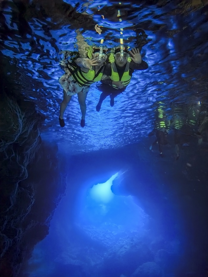 수심이 깊고 지형이 독특하지만, 구명조끼를 착용한 스노클링만으로도 수만 가지 푸른 빛의 변주를 감상할 수 있습니다.