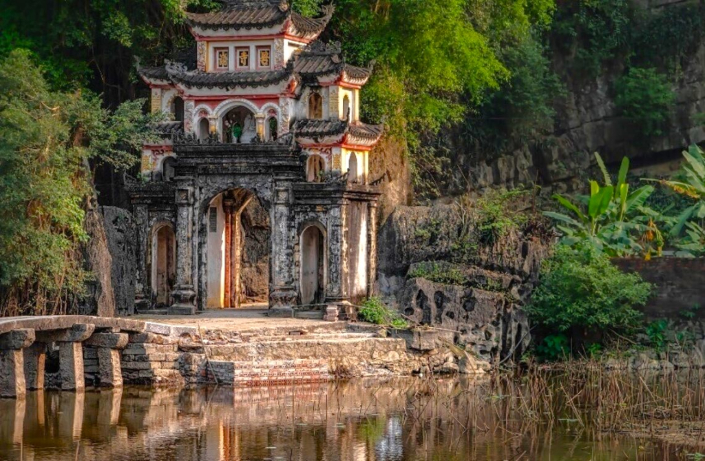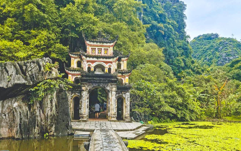 닌빈의 절경 속에 자리한 고즈넉한 불교 사원입니다.