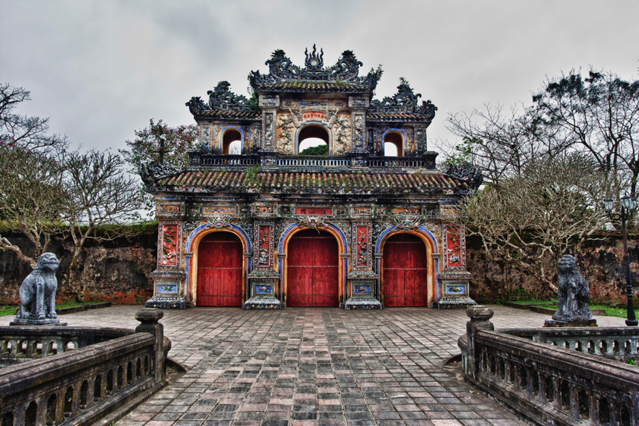 - 후에 왕궁의 정문 응오문, 타이 호아궁, 구정을 방문합니다.