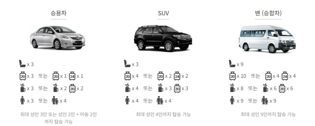 ex) 11명 이용 시 / 승용차 2인 + 승합차 5-9인