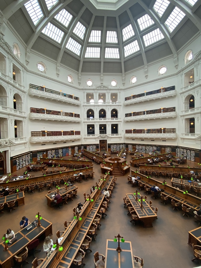 1850년대 만들어진 호주를 대표하는 도서관. 예전 그대로의 책상과 걸상을 지금도 사용하며, 아름다운 돔 모양의 리딩룸(La Trobe Reading Room)은 한국 여행객들에게 해리포터 도서관이라는 별명으로도 불린다.