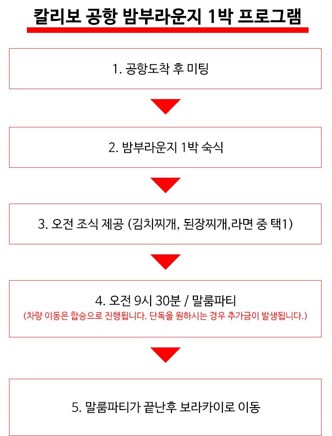 ※ 칼리보 공항 밤비행기로 도착후 밤부라운지 0.5박→말룸파티→보라카이로 가는 일정