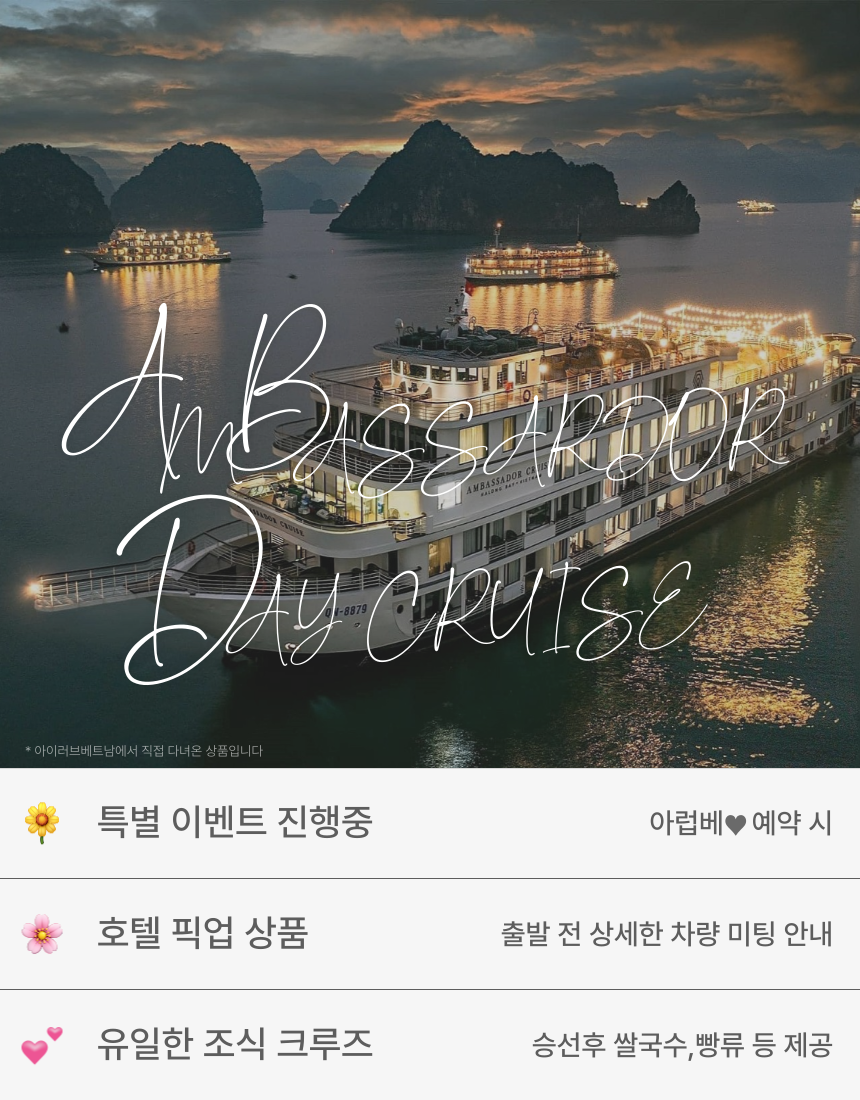 [하롱베이] 압도적인 최대 규모 엠바사더 데이 크루즈 # 픽업샌딩 #투어형