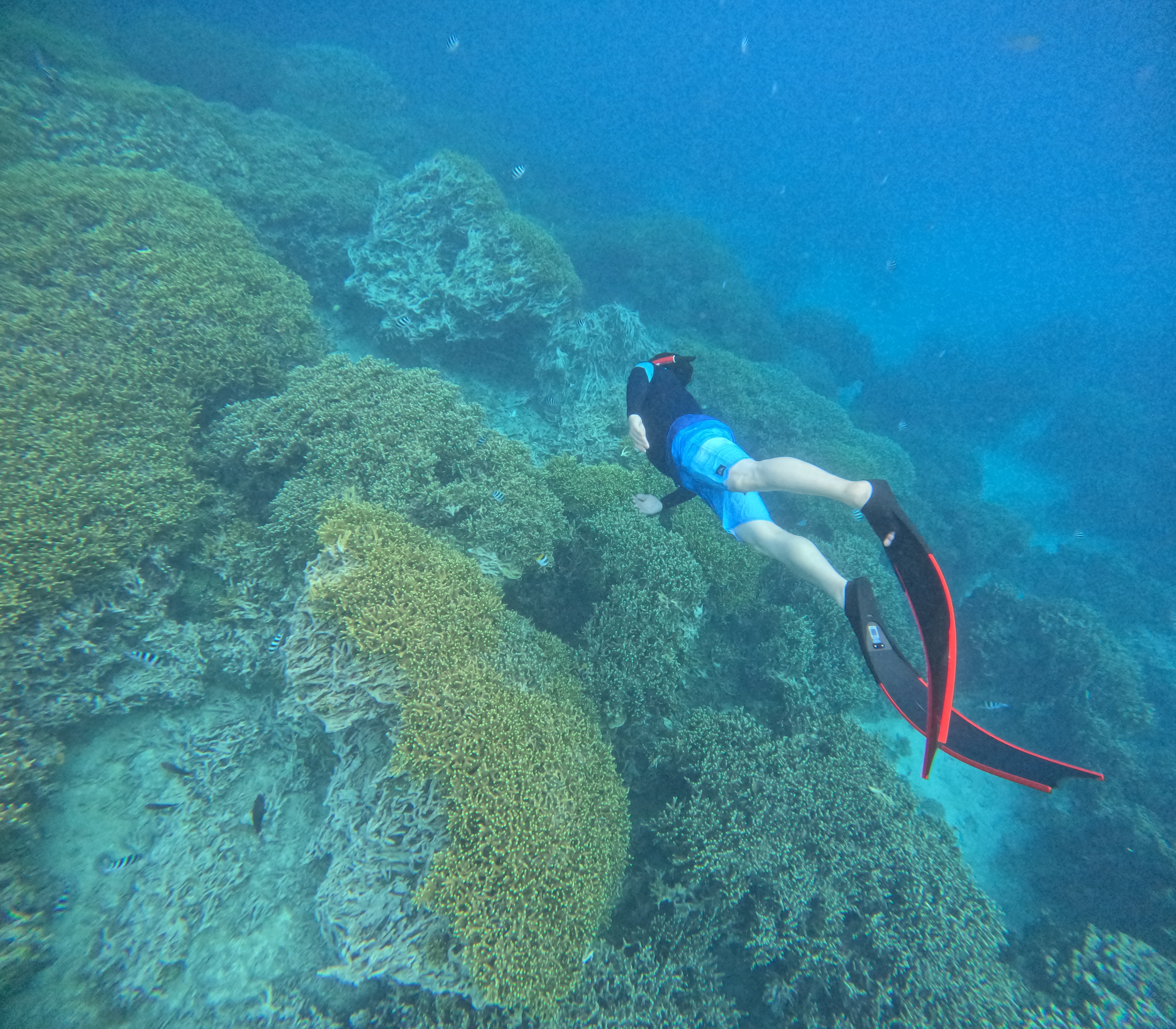 바로 앞 해변으로 걸어가 허리 깊이의 얕은 물에서부터 스노쿨링과 프리다이빙이 진행됩니다.