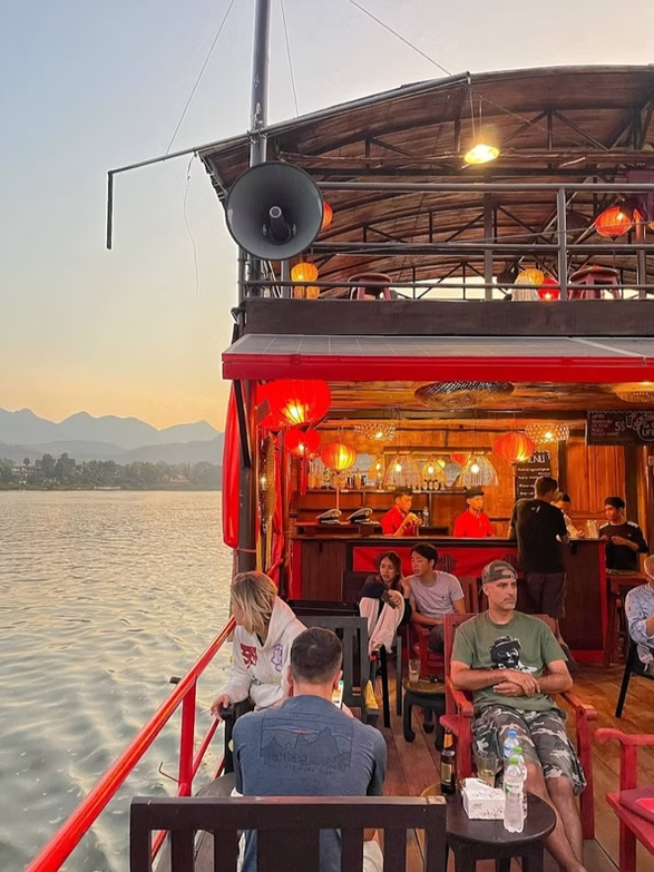 ▷ 사사 선셋 크루즈는 메콩강을 따라가는 슬로우보트 크루즈입니다. 편안한 음악을 감상하고, 간단한 식사를 하고, 맥주나 칵테일을 즐겨보세요.