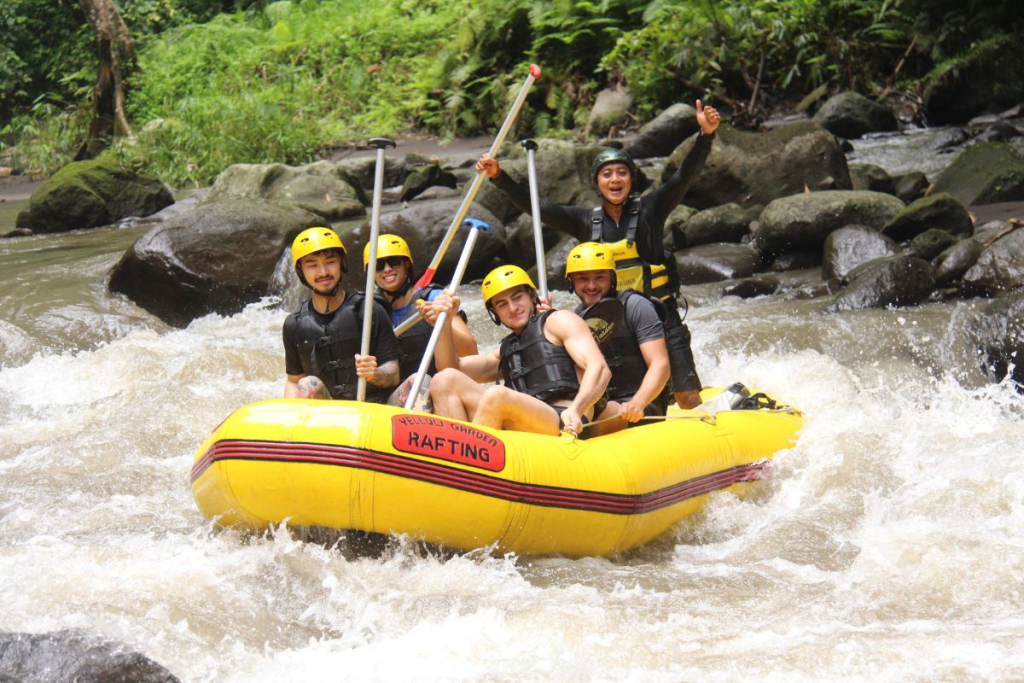 옐로우 가든 아융강 래프팅은 약 2시간 동안 발리의 숨겨진 자연을 온몸으로 체험할 수 있는 모험 가득한 투어입니다. 울창한 숲과 작은 폭포, 시원한 강바람이 어우러진 아융강 위를 따라, 전문 가이드의 안내와 함께 안전하게 즐길 수 있어요.