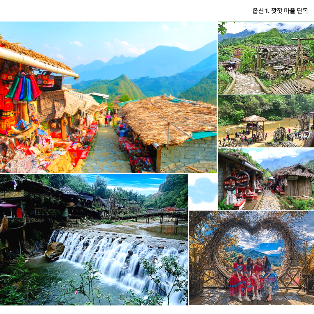 ◆ 흐몽(몽족,Hmong) 소수 민족이 살아가던 전통 마을로, 사파 시내에서 가까워 사파 도착 첫날 많이 방문하는 곳입니다. 실제로 몽족이 살고 있는 전통가옥과 아름다운 폭포를 감상하실 수 있습니다. 전통 수공예품을 판매하는 몽족들이 길거리에 노점을 펼쳐놓고 아름다운 폭포를 배경으로 전통 문화공연이 펼쳐지기도 합니다.