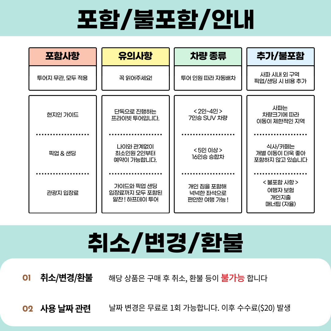 - 최소 모객 인원 미달 시 투어가 취소될 수 있습니다.