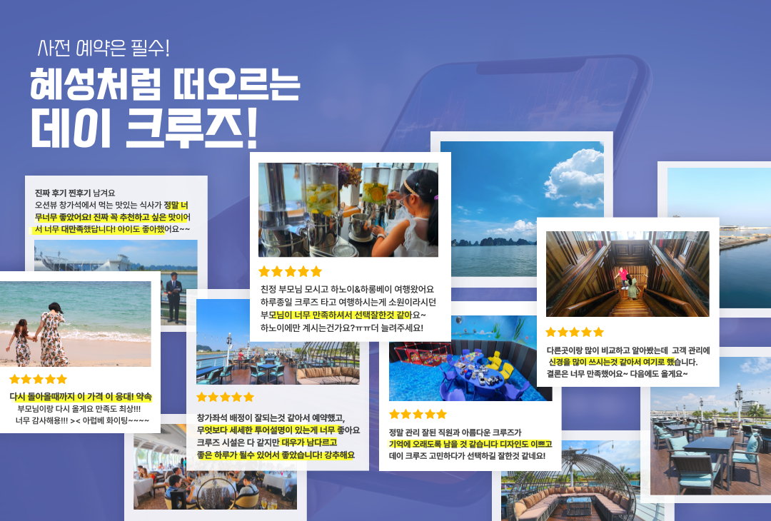 특히 하롱베이 크루즈 관련 리뷰에서는 제공된 식사의 품질, 크루즈의 규모, 그리고 작은 배로 갈아타는 경험 등이 긍정적으로 평가되었습니다. 고객들은 아이러브베트남을 통해 예약한 여행에서 편안하고 즐거운 시간을 보냈다고 언급하며, 특히 가족 단위의 여행객들 사이에서 높은 만족도를 보였습니다.