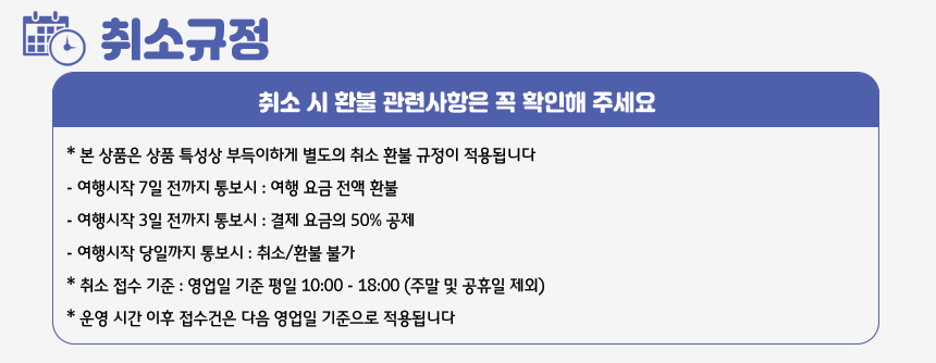부럽트래블은 통신판매중개자이며 통신판매의 당사자가 아닙니다. 부득이한 사정에 의해 확정된 여행일정이 변경되는 경우 여행자의 사전 동의를 받습니다.