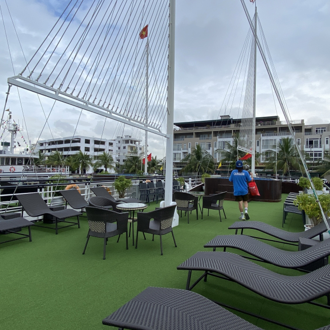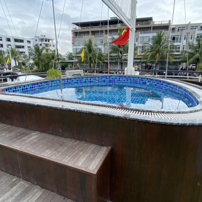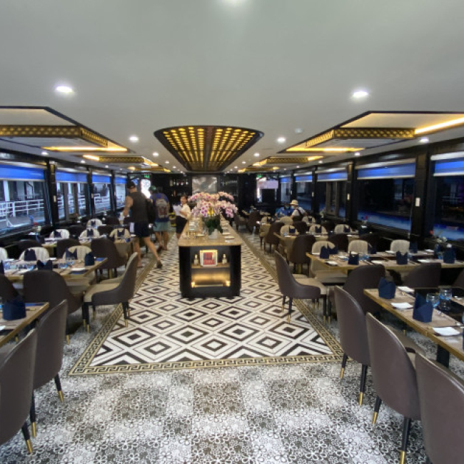 픽업 차량: 7인승 리무진 / 15인승 리무진 픽업 시간: 오전 7시 전후 픽업 차량은 7인승 리무진 / 15인승 리무진등 리무진급 차량이 배정됩니다. 크루즈에서 생수도 사 드셔야 하므로(2만동) 기본적인 물이나 간식을 미리 준비 하시면 좋습니다. 차 안에서 혹은 하롱베이 도착 후 간단히 드실 간식을 준비 하시면 좋습니다. 하롱베이 뚜언 초우 항구의 체크인 라운지 입니다. 두 대의 보트가 인원에 따라 운영됩니다. 오전 10시 30분경, 탑승이 시작됩니다.