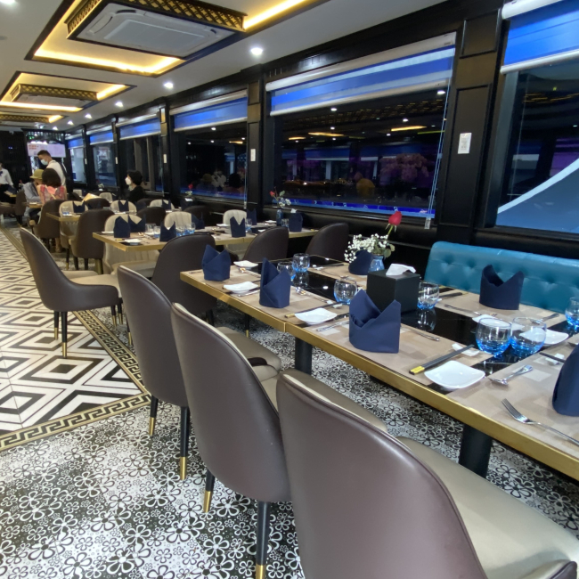 모던하고 쾌적한 실내 디자인에 맛있는 뷔페식 중식이 제공되는 인기있는 크루즈!