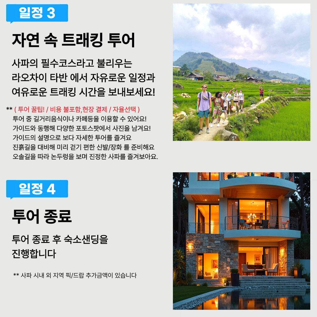 🏨 투어 종료 (사파 시내 외 지역 픽/드랍 추가 금액이 있습니다.)