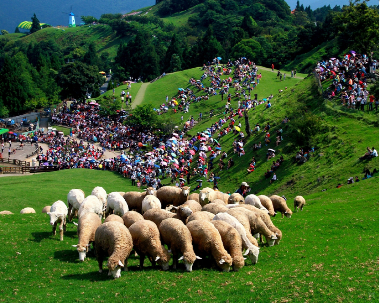 해발 1750미터에 위치한 칭징 농장은 산과 가까이 있는 아름다운 자연을 즐길 수 있는 곳입니다. 그 북쪽에 위치한 구역이 그린 그린 그래스랜드로 양과 소들이 자유롭게 거니는 곳이며, 동물들과 가까이서 교감할 수 있고 신선한 공기를 마시고 그림같은 풍경도 감상하실 수 있습니다.
