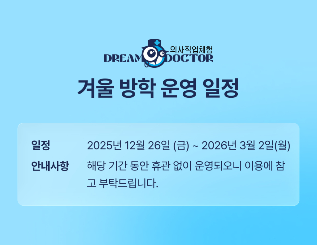 2025년 12월 26일(금) ~ 2026년 3월 2일(월) 기간 동안 휴관 없이 운영합니다.