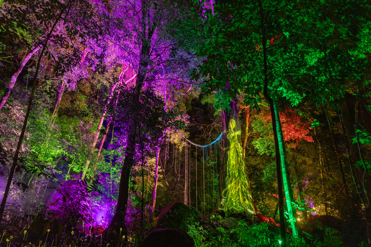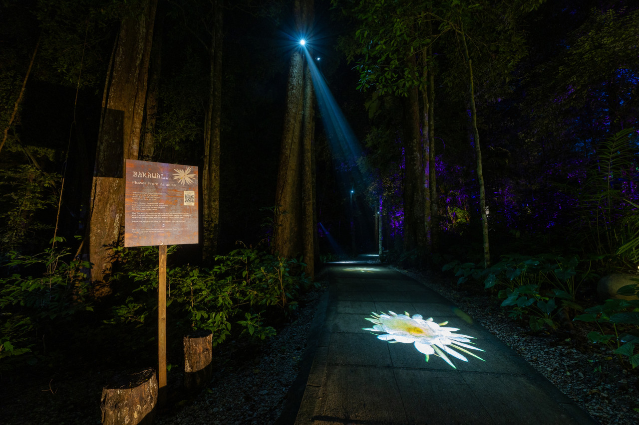 드림 포레스트 랑카위에 방문하여 다중감각적 열대우림 속에서 밤 산책을 즐겨보세요. 1.2킬로미터에 달하는 산책길을 따라 걸으며 랑카위의 신화에 대해 알아가면서, 최면 같은 빛과 음악, 프로젝션 매핑과, 설치 예술 및 스토리텔링이 함께 어우러진 환상에 빠져보세요. 숲을 보호하는 자연 환경에서 설계된 랑카위 드림 포레스트의 14가지 테마 구역을 둘러보세요.