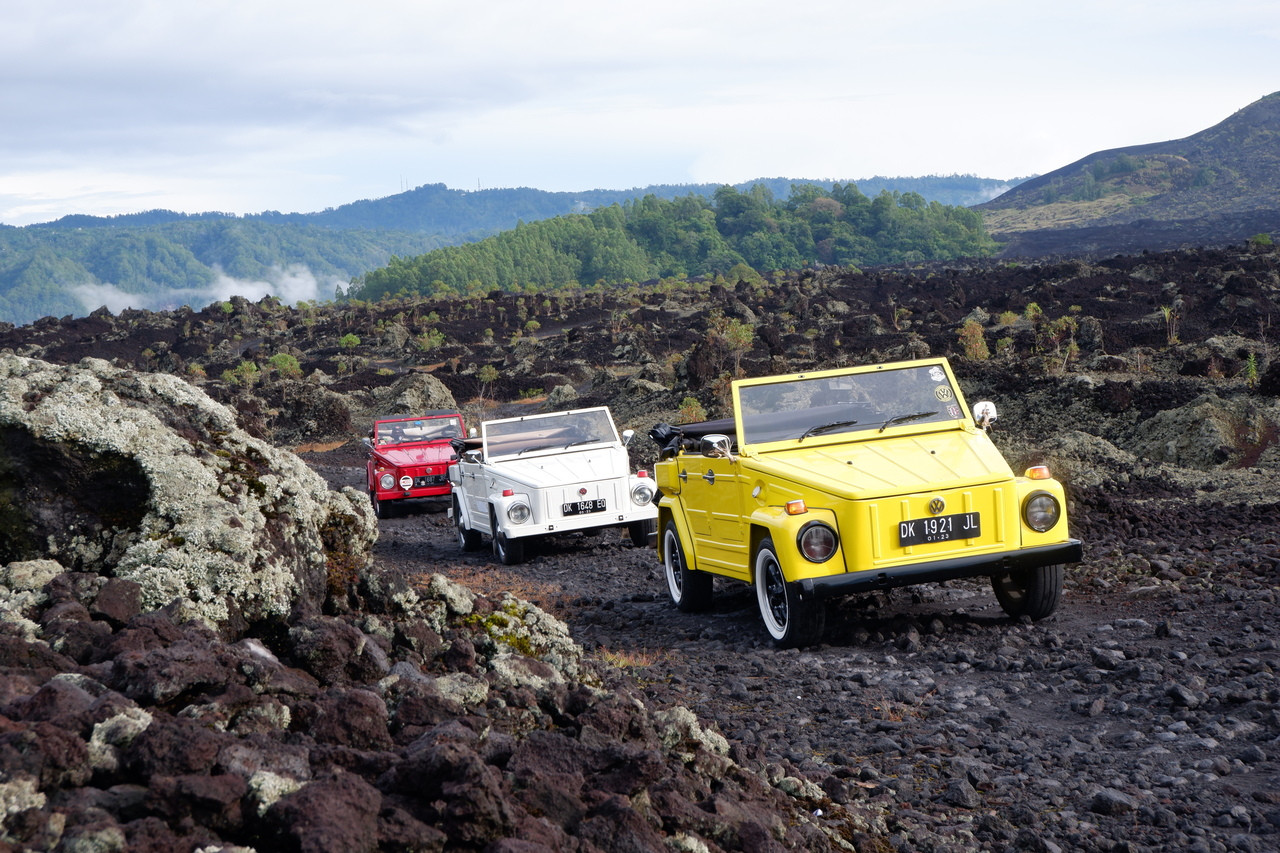발리의 인기 있는 화산인 바투르 산을 고전미가 돋보이는 폭스바겐 지프차를 타고 둘러보는 일일 투어에 참여하여, 계단식 논과 무성한 초목을 지나며 드라이브를 시작하세요. 바투르산 페넬로칸의 드넓은 칼데라 가장자리에 도착하여, 초목을 덮고 있는 거대한 용암류를 오래된 분화구에서 감상해보세요. 용암 언덕에 올라 검은 용암 모래로 덮인 산에서 전망을 즐기고, 자연 온천에서 휴식을 취하세요.
