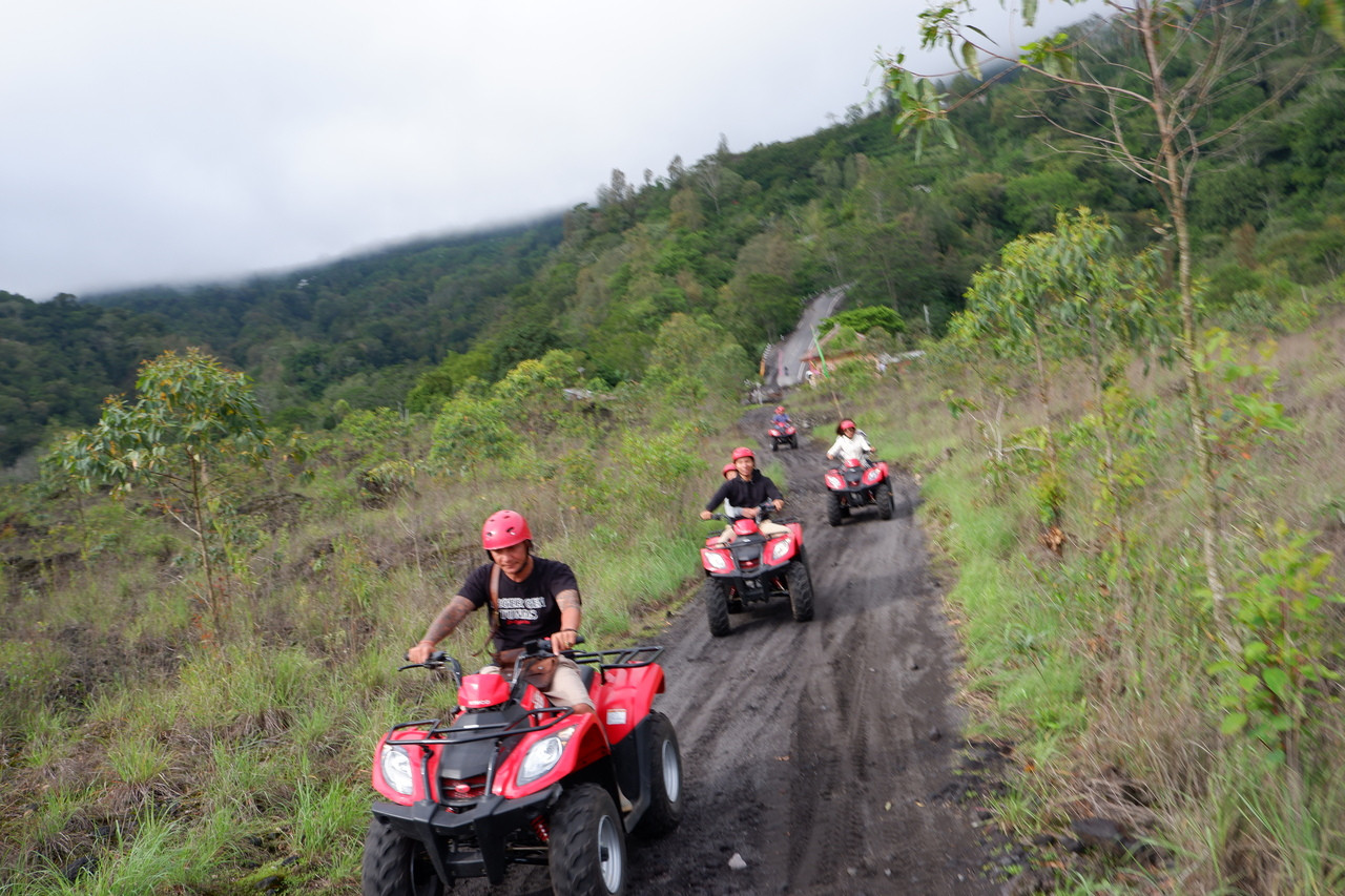 4륜 오토바이를 타고 해발 1,717 미터 높이에 위치한 발리의 활화산, 바투르 산으로 오토바이 투어를 떠나보세요. 강력한 250cc 엔진이 탑재되어 있으며 쉽게 컨트롤 할 수 있는 반자동 4륜 오토바이를 타고 정글 산책로 및 그림 같은 마을과 검은 빛깔이 도는 용암 모래 위를 운전해보세요. 바투르 호수를 배경으로 한 천연 온천 시설에서 휴식을 취해보세요.