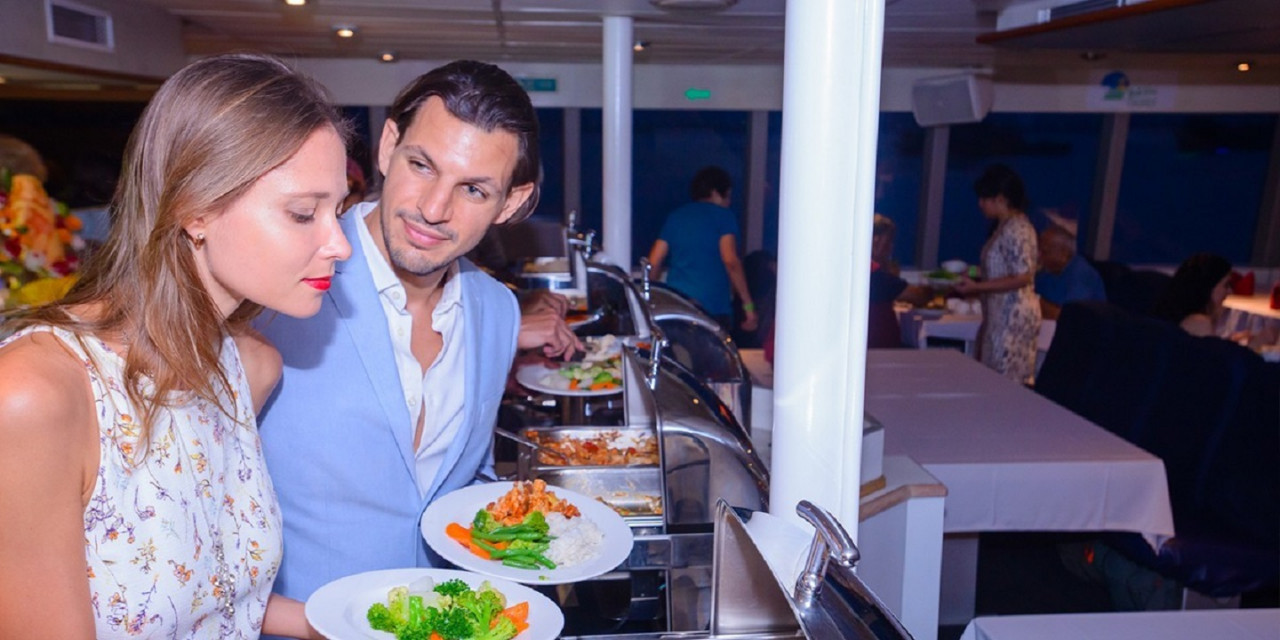 - 저녁 뷔페는 메인 데크에서 제공됩니다. 디저트는 오후 8시 15분까지만 이용 가능합니다.