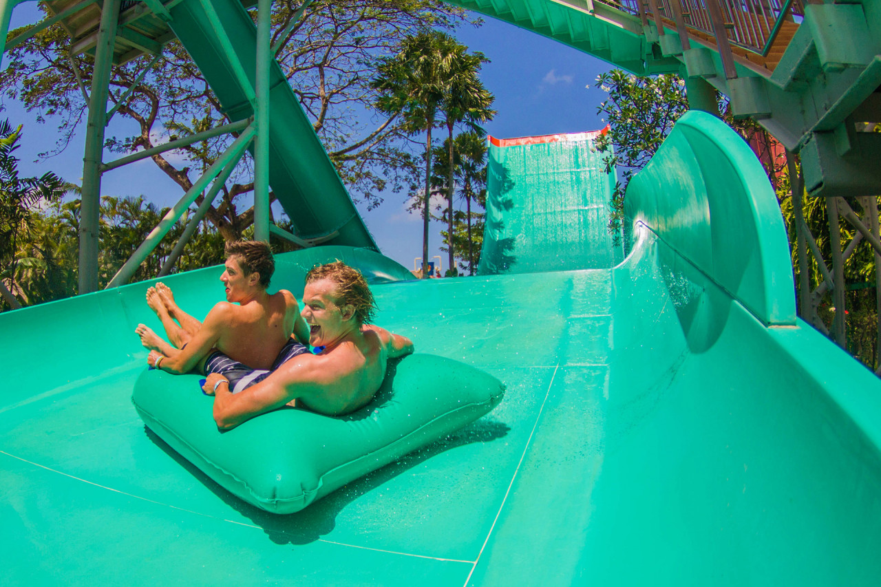 푸르른 열대 정원에 위치한 워터밤 발리는 5만 제곱미터 규모로, 온 가족이 즐길 수 있는 워터파크이며, 슬라이드, 어트랙션, 수영 바, 그리고 멸종 위기에 처한 자생 식물들이 있는 넓은 녹지 공간을 제공합니다. 순함, 평범 , 익스트림의 스릴 레벨로 분류된 26개의 슬라이드들 외에도, 느긋하게 흐르는 Lazy River에서 수영하거나, Twin Racers에서 친구들과 시합을 할 수 있으며, 어린이들은 AquaPlay 워터 놀이터에서 스플래시 존과 인터랙티브 존을 함께 즐길 수도 있습니다.