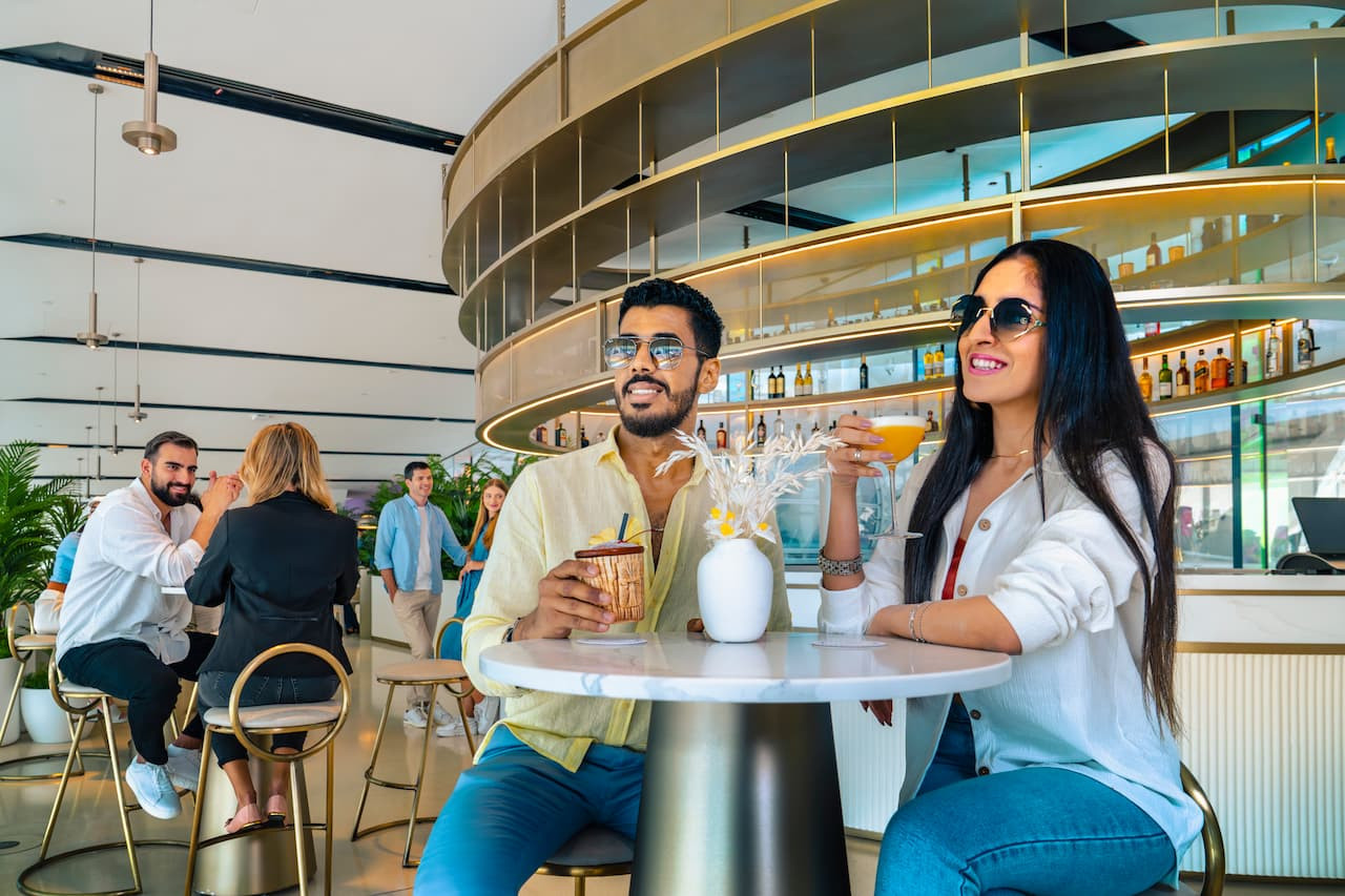 한쪽에서는 두바이 마리나의 풍경을, 다른 쪽에서는 아라비아 만의 풍경을 감상해 보세요.