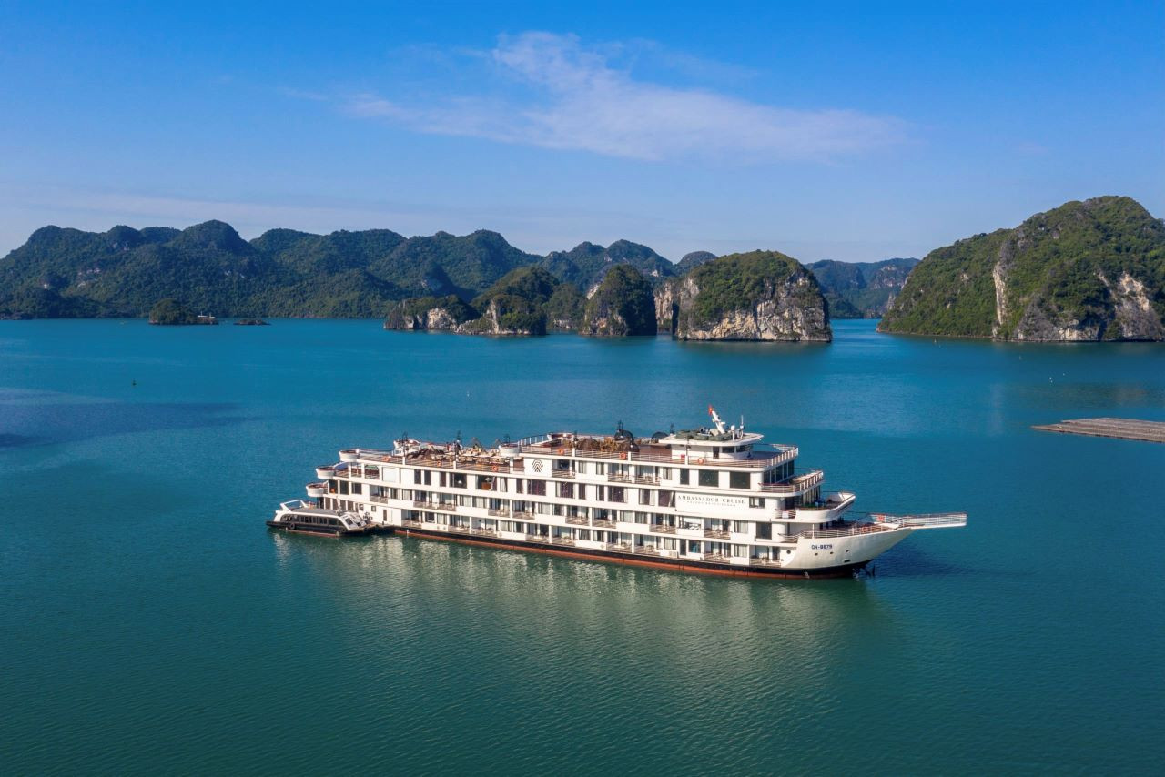하롱베이에서 가장 크고 고급진 5성급 크루즈를 제공하는 엠버서더 크루즈에 탑승하여 초호화 서비스, 프리미엄 아시아-유럽 요리를 제공하는 딜럭스 레스토랑 등 편의 시설을 이용하고, 360도 쌍둥이 상갑판에 누워 휴식을 취하고, 탁 트인 자쿠지 풀장에서 전망을 감상해보세요. 선상에 누워 쇼나 라이브 공연을 보는 것부터 시작하여 하이킹, 수영, 동굴 탐험까지 다양한 액티비티가 준비되어 있습니다.