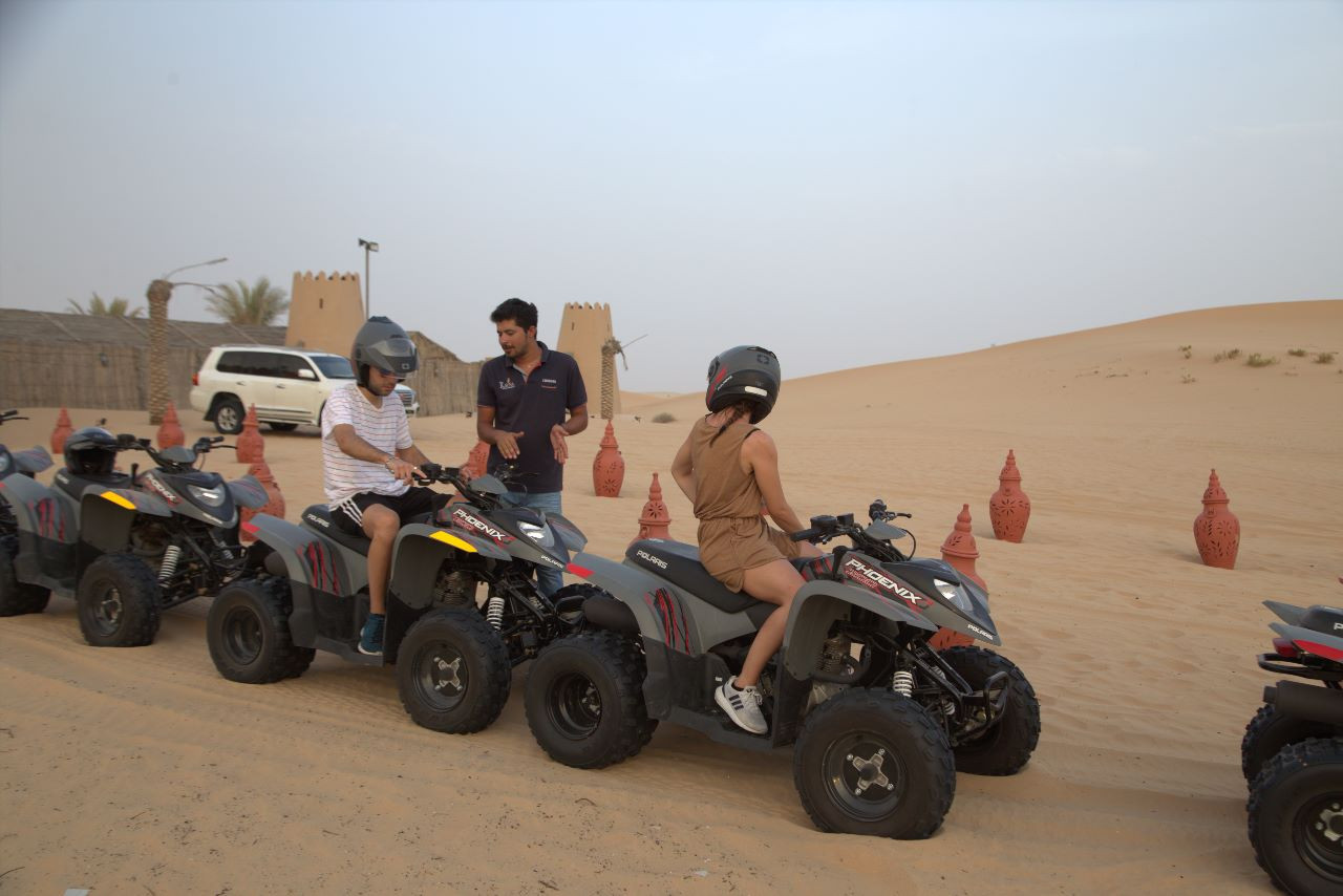 전통적인 베두인 스타일의 캠프장에서 진정한 에미리트 문화를 체험해보고, 전문 가이드와 함께 낙타의 등 뒤에 올라보세요.