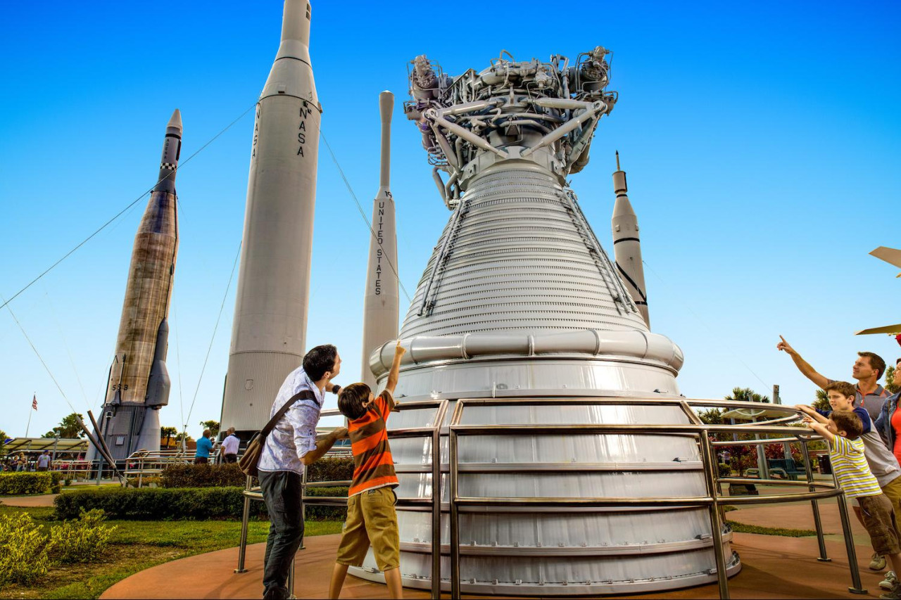 인류가 만든 가장 강력한 로켓, 거대한 새턴 V(Saturn V) 달로켓 아래를 직접 걸어보세요.