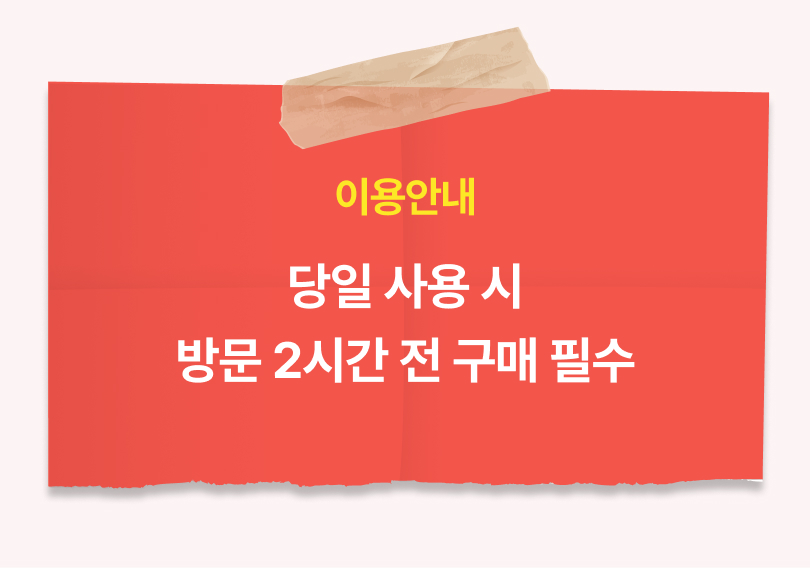 최소 이용 2시간 전까지 구매해 주세요. (당일 구매 / 당일 사용 가능)