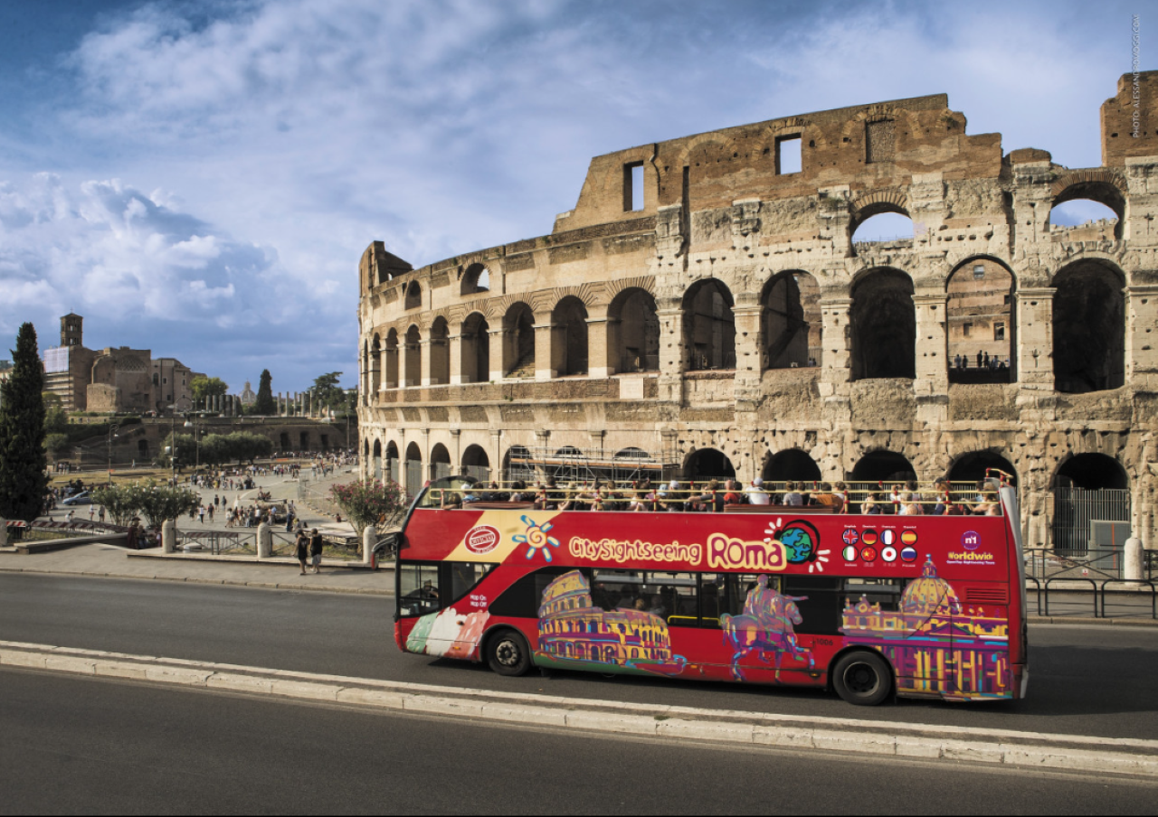 오픈탑 2층 버스에서 편안하고 편리하게 로마를 구경해보세요.