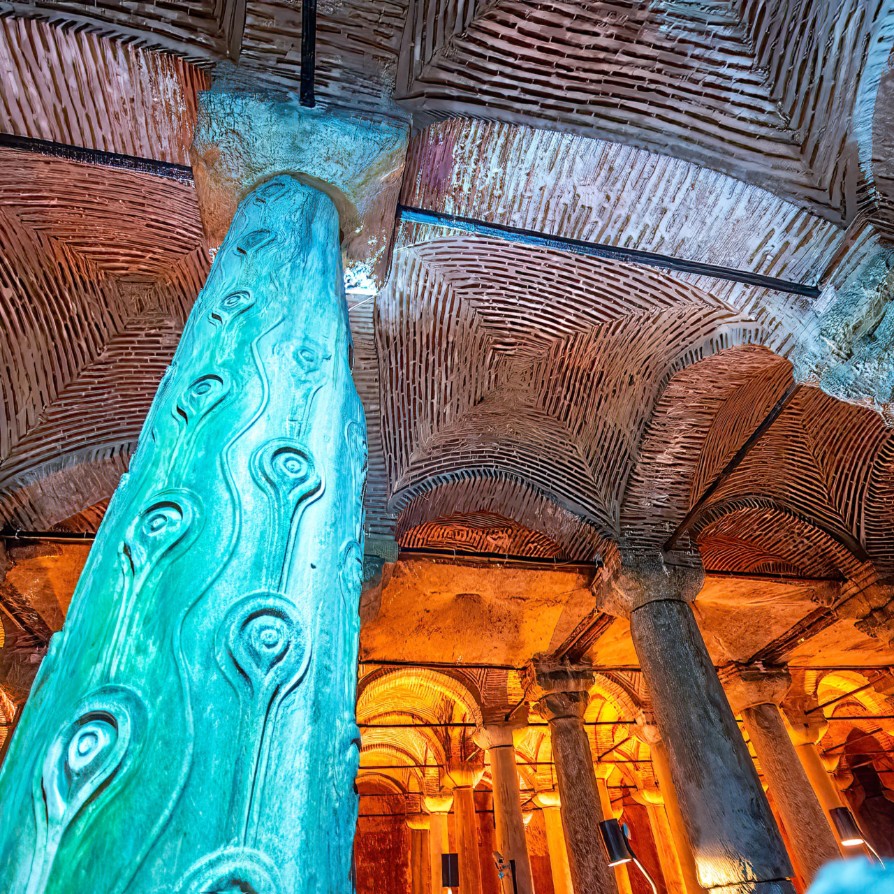화려한 비잔틴 양식의 바실리카 시스턴 지하 궁전은 비잔틴 제국 당시 이스탄불의 물 공급을 위해 만들어진 건축물로 9미터 높이의 336개의 대리석 기둥으로 이루어진 대규모의 물탱크 시설이었습니다. 336개의 조명이 비추는 대리석과 화강암 기둥들이 자아내는 아름다운 경치를 감상하고 거대한 비잔틴 건축물과 기둥 바닥에 자리잡은 메두사 머리도 찾아보시기 바랍니다. 우리에게 익숙한 제임스 본드 영화 "프롬 러시아 윗 러브"와 댄 브라운의 "인페르노" 등의 배경이 된 이곳에서 영화 속의 현장을 직접 거닐어보세요!
