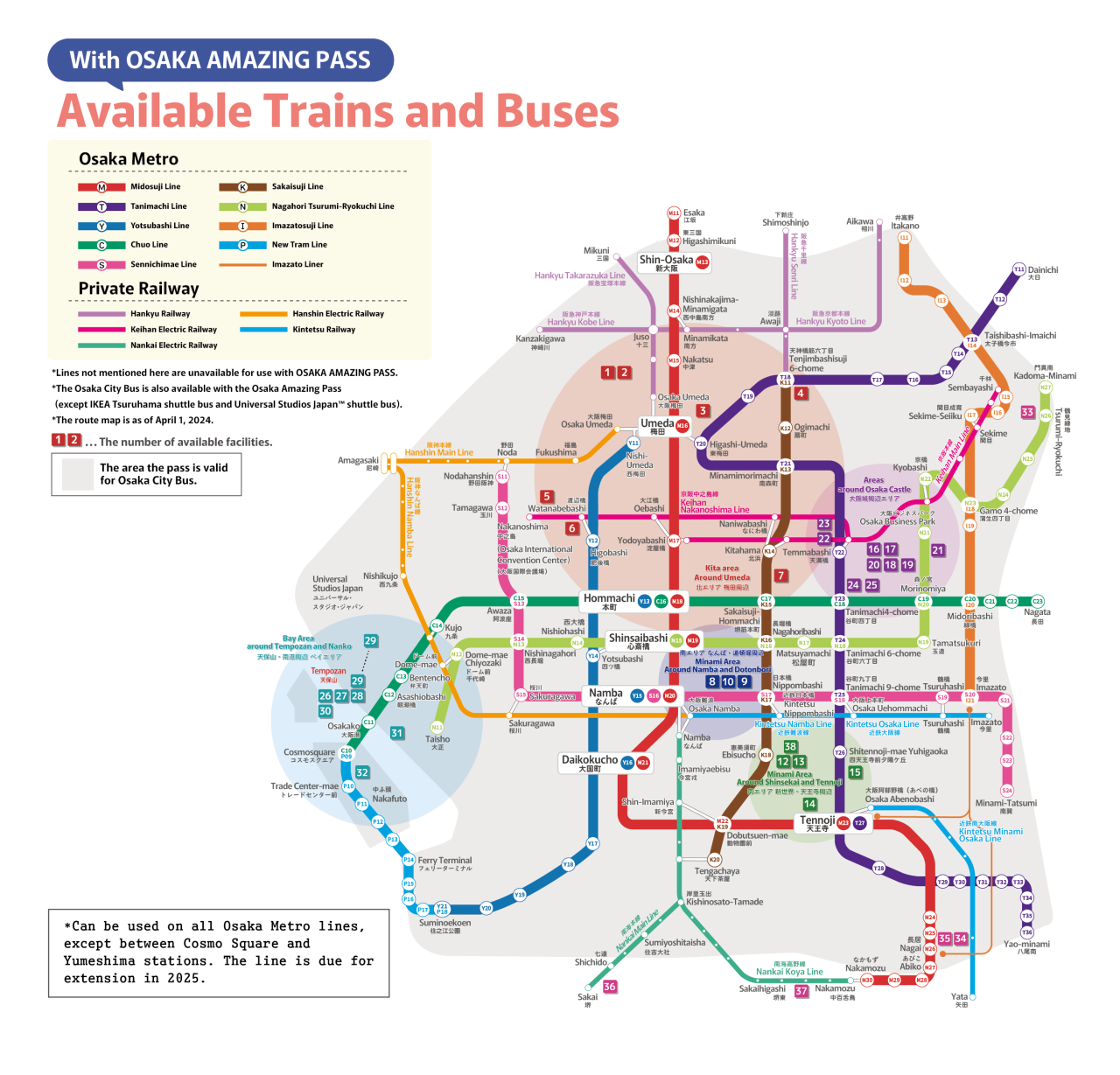 - 이용 가능한 시설 목록은 다음과 같습니다. (https://osaka-amazing-pass.com/kr/service_free.html)