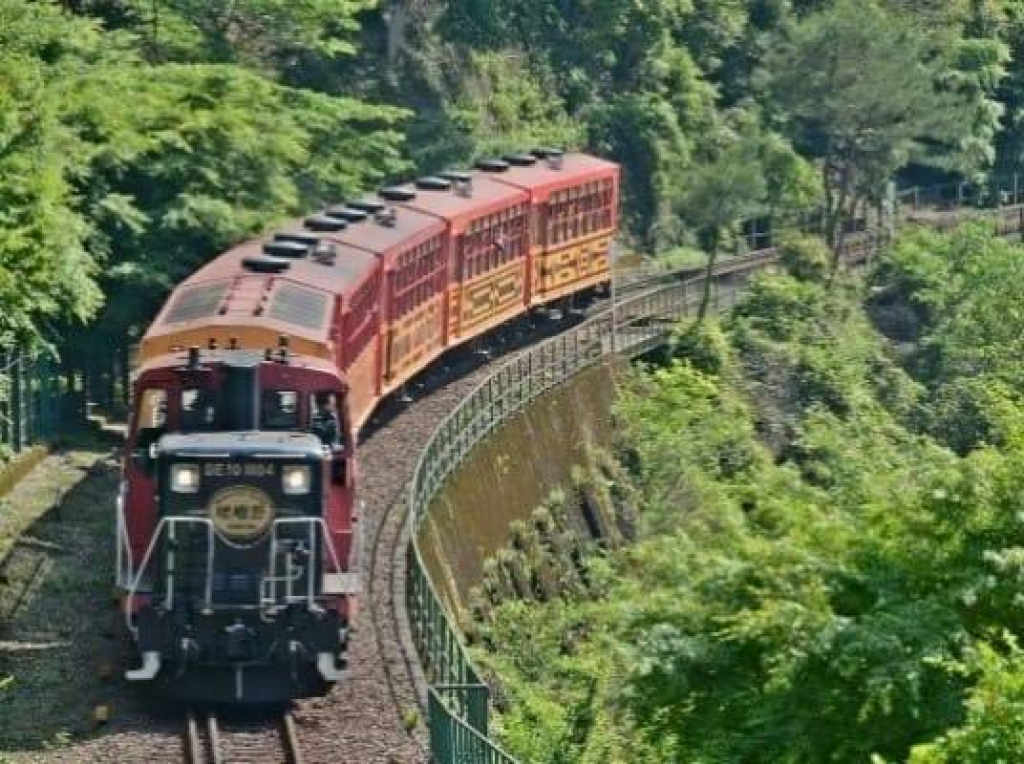 교토의 아름다운 풍경을 한 눈에! 교토의 아름다운 대나무숲 아라시야마에서 출발하는 관광열차 토롯코 봄에는 벚꽃을~ 여름에는 초록초록 풍경을 가을에는 알록달록 단풍을 볼 수 있는 관광열차입니다. JR산인본선 복선전철화로 인해 사용되지 않는 구 산인본선의 선로를 달리는 사가노 토롯코열차. 붉은 차차에 금색과 까만 모양의 아르데코식 열차가 JR사가아라시야마역 부근의 토롯코 사가역부터 토롯코 가메오카역까지의 7.3km를 약 25분에 달립니다. 대부분의 선로가 호즈강 부근과 접해있어 계절마다 멋진 풍경을 볼 수 있습니다.